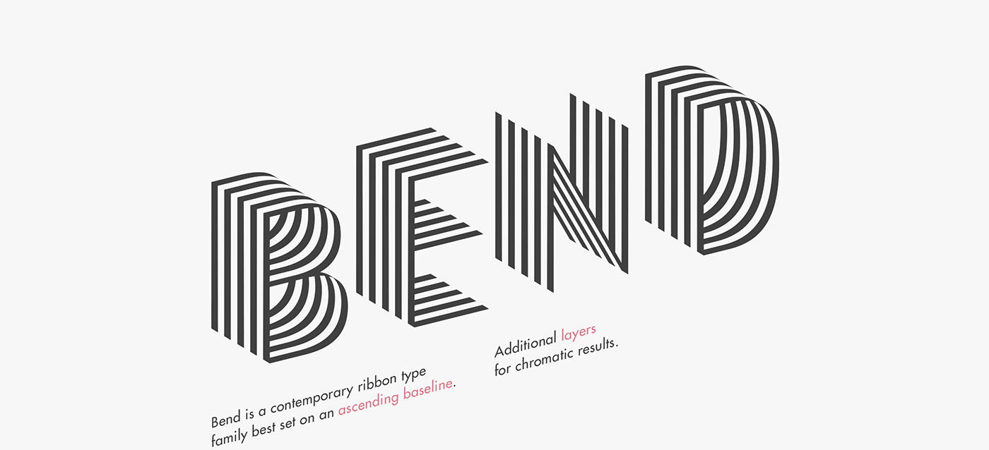 Bend free font is a ribbon typeface sans serif with a cool look. Simply rotating the text element by 14 degrees reveals the 3D effect and Bend’s full potential. Ideal for short sentences, big headlines posters this font is another must have.