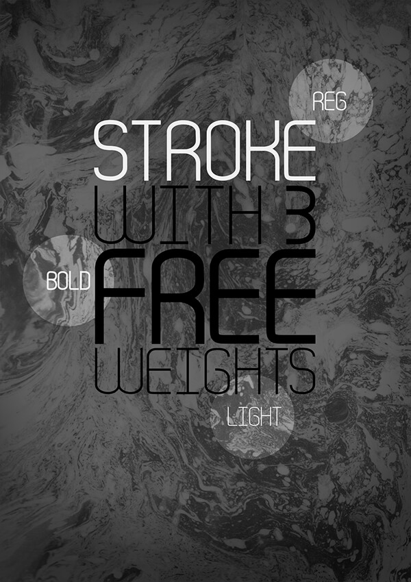 Stroke free font it’s a sans serif font with elegant details. It includes 3 weights ( regular, bold and light ). This cool font looks great for poster headlines, flyers, logos, whatever your imagination decides.